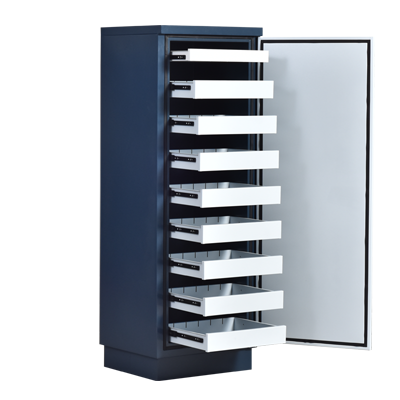 7、 抽屜層數可以根據需要進行調整,抽屜內配有調整板,也可根據資料的大小寬度等進行調節(jié),防止晃動或打亂;